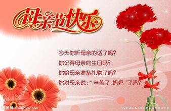 人不孝,不可交;人盡孝,品德高;愛母心,不可拋;報(bào)母恩,要勤勞。母親節(jié),要問(wèn)好;康乃馨,真情表。你與我,多年交;母親在,樂(lè)陶陶!