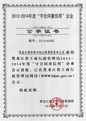 2013-2014年度守合同重信用企業(yè)