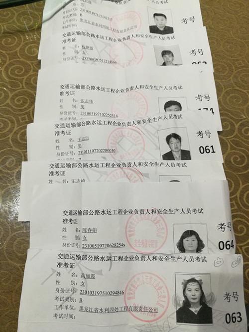 我公司共有八名相關人員參加了此次考試,考試合格后將由黑龍江省交通廳頒發(fā)相應的公路水運質量施工企業(yè)“三類人員”崗位資格證書。