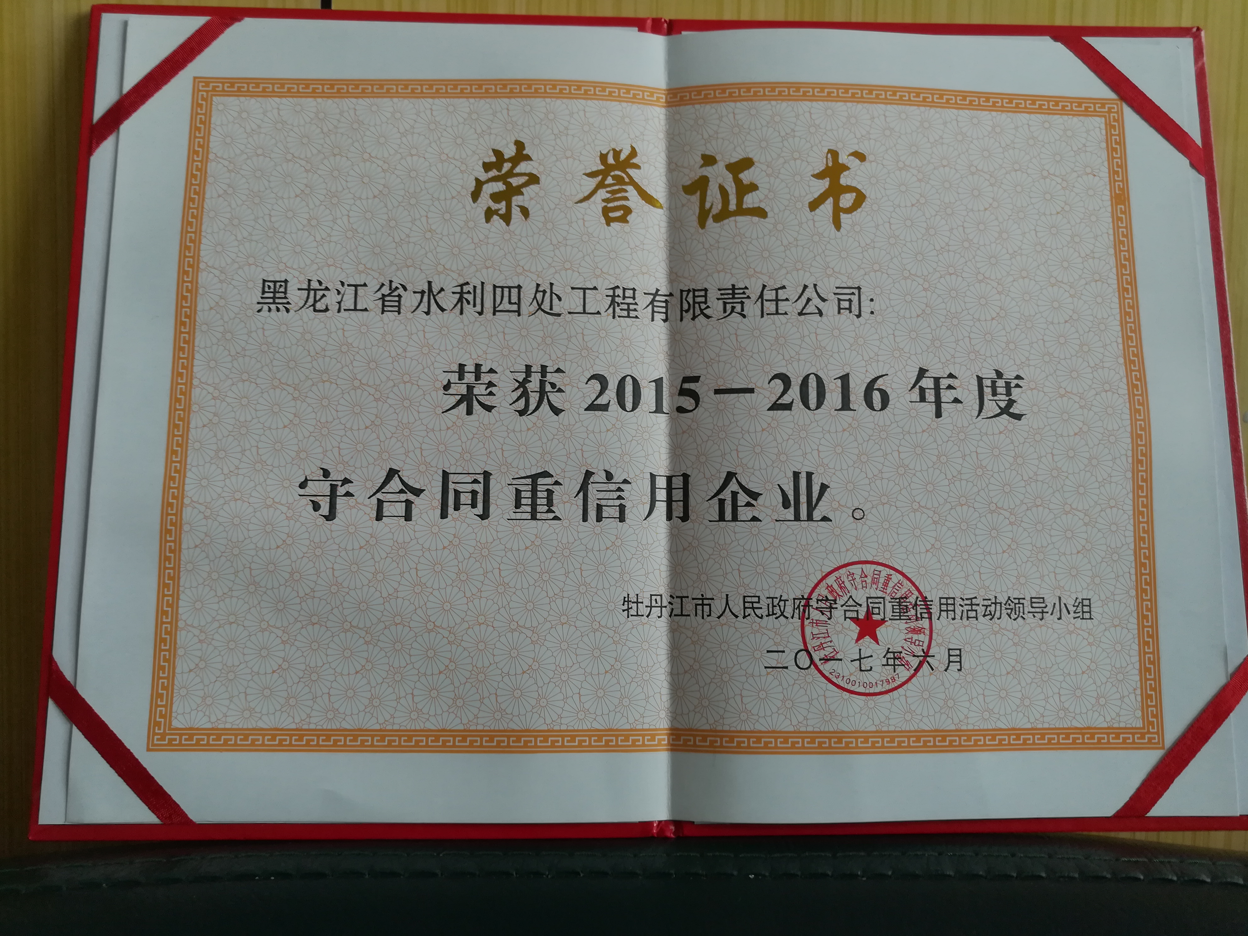 2017年6月初,我公司再次被牡丹江市政府授予“守合同重信用企業(yè)”榮譽(yù)稱號(hào)。迄今為止,這是我公司連續(xù)十四年獲此殊榮。