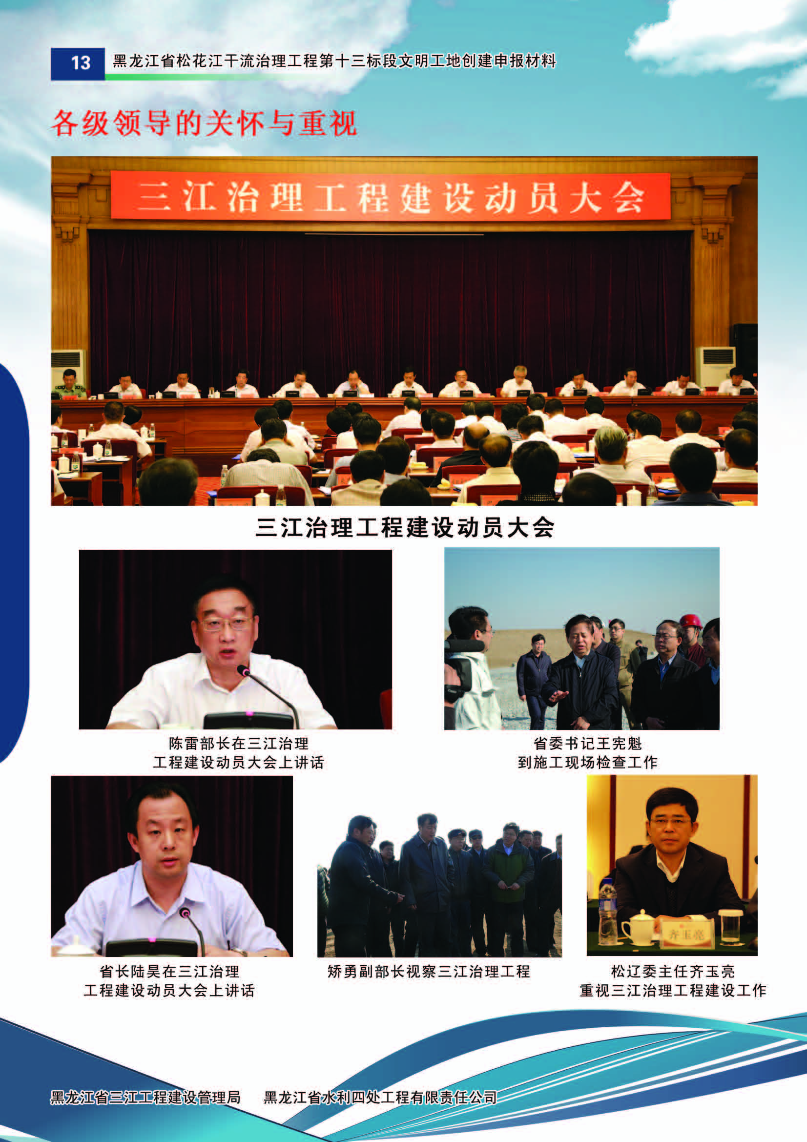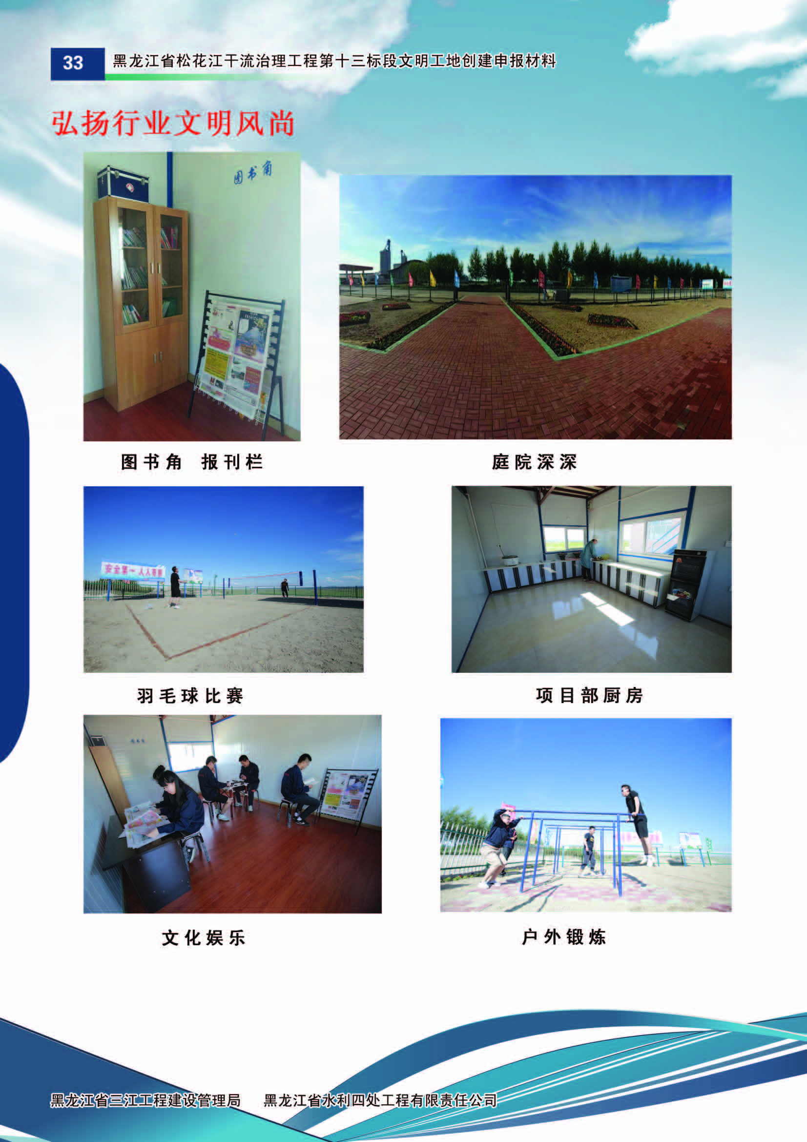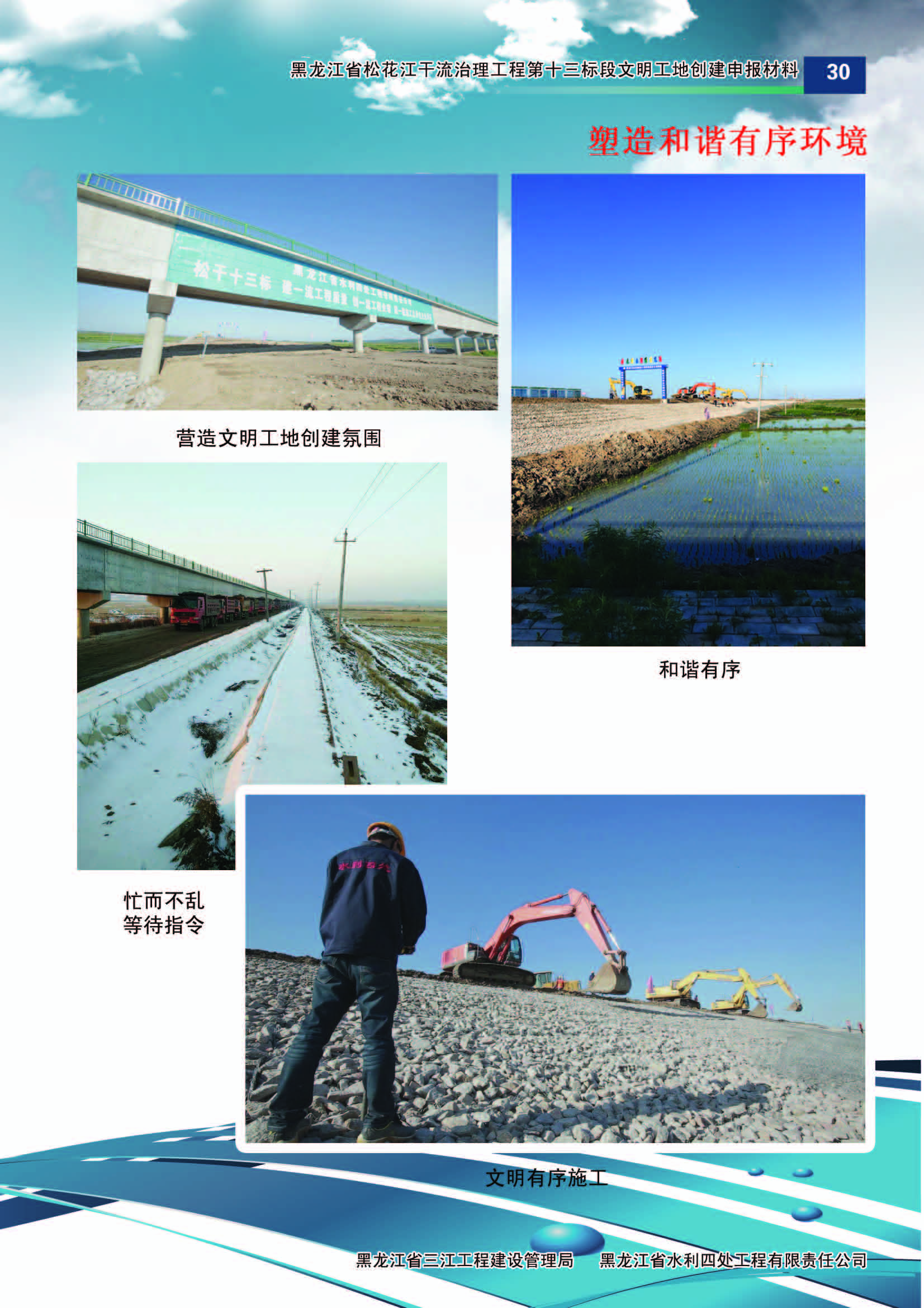 黑龍江省水利四處松干治理工程第十三標段文明工地創(chuàng)建風貌,猶如綻放在松花江沿岸上的一朵瑰麗之花,彰顯著水利行業(yè)的文明風尚。
