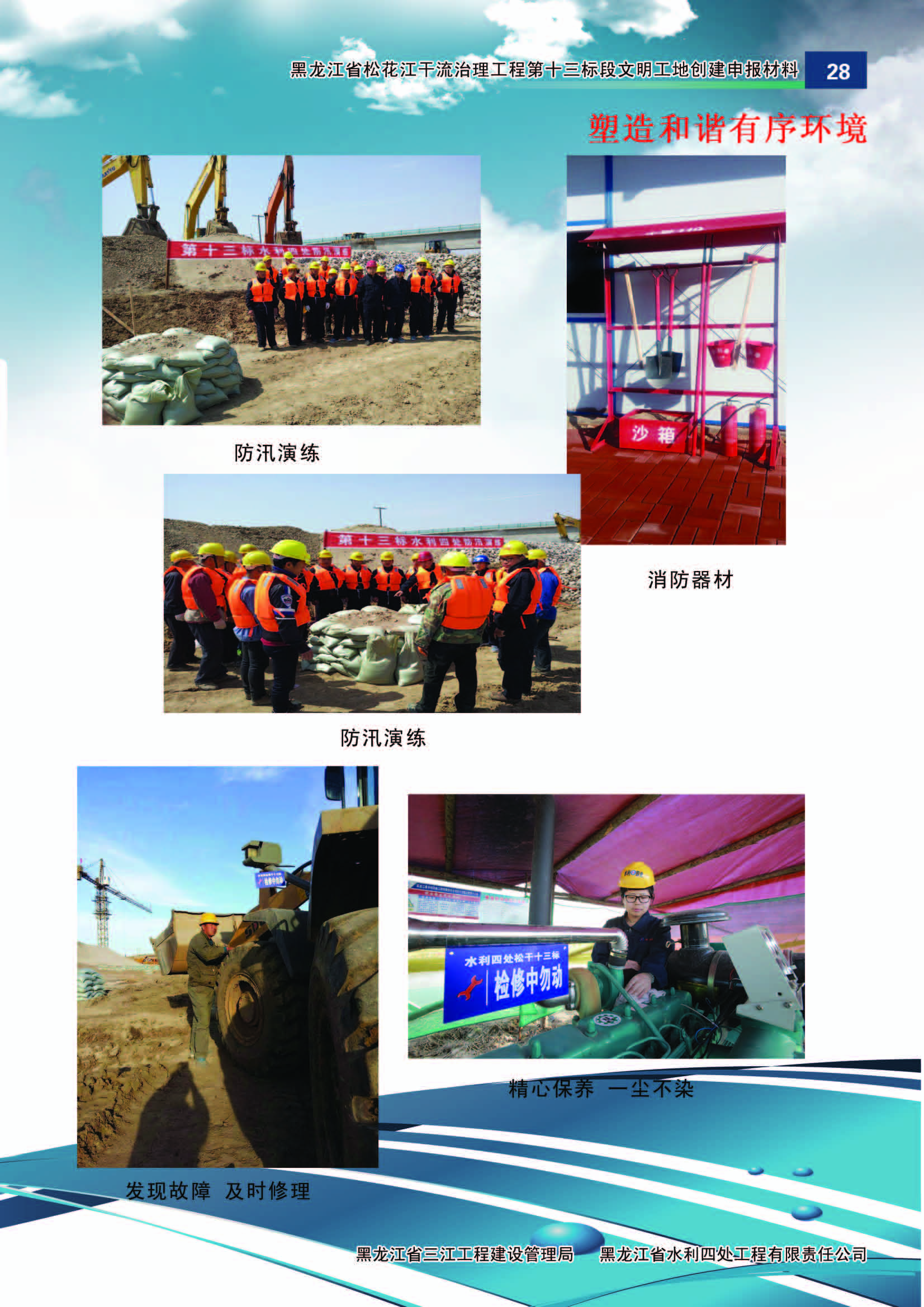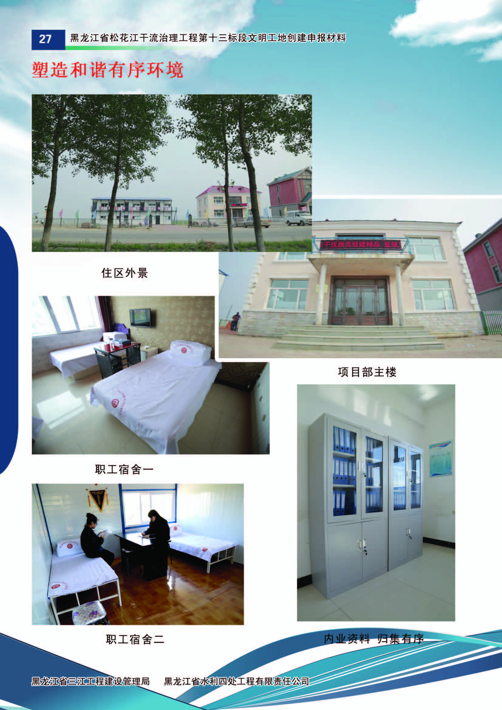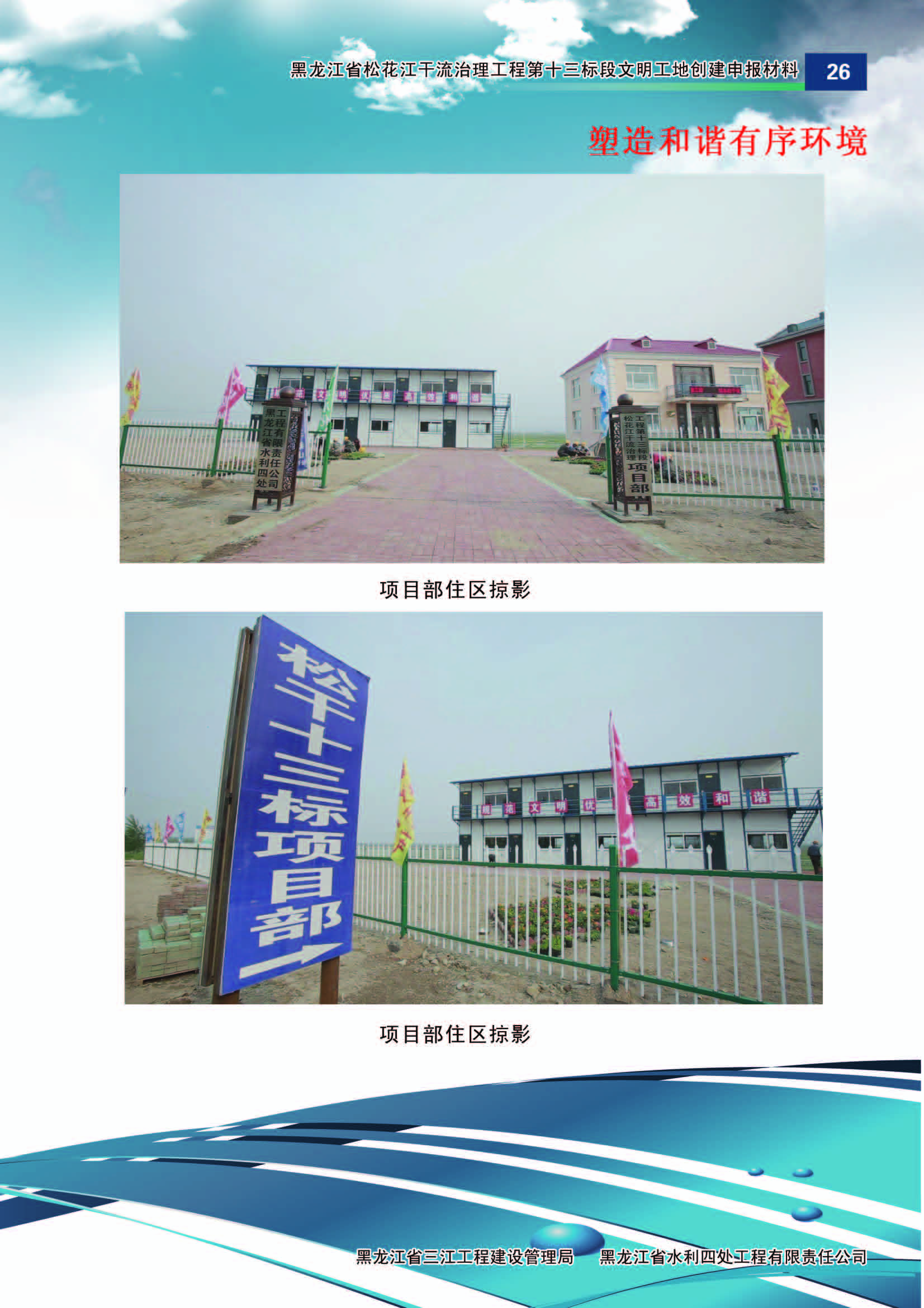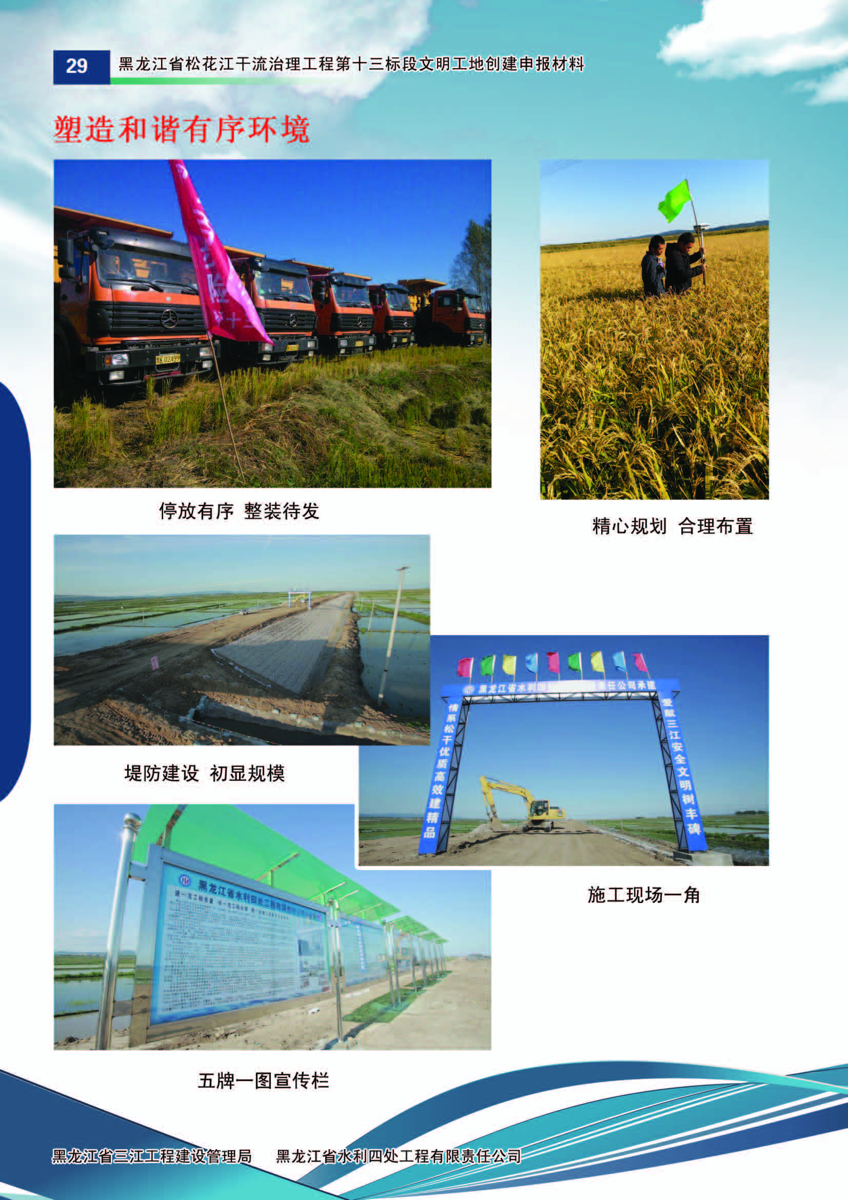 施工中黑龍江省水利四處嚴格按照水利部《水利建設工程文明工地創(chuàng)建管理辦法》的要求,積極組織開展文明工地創(chuàng)建活動。