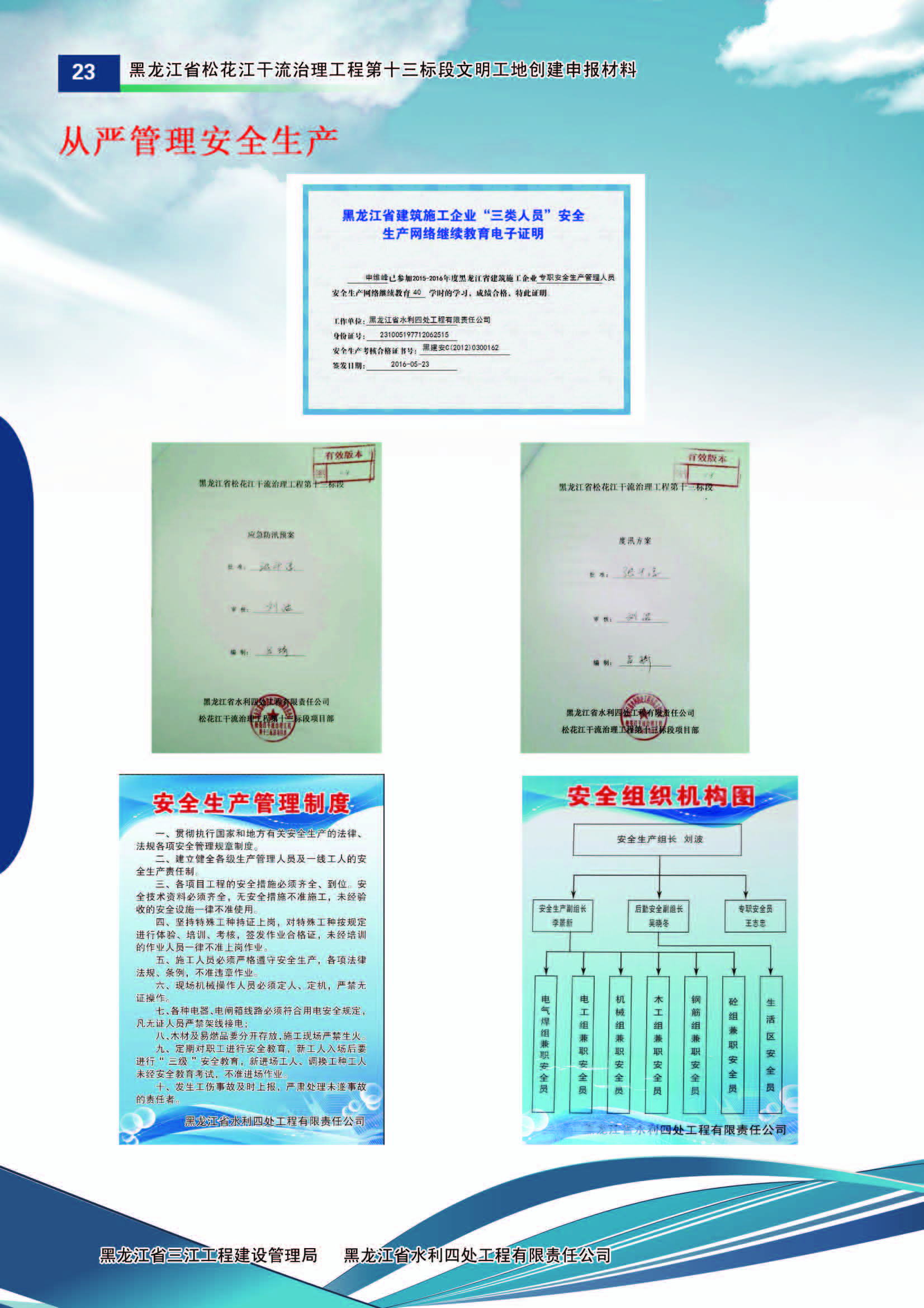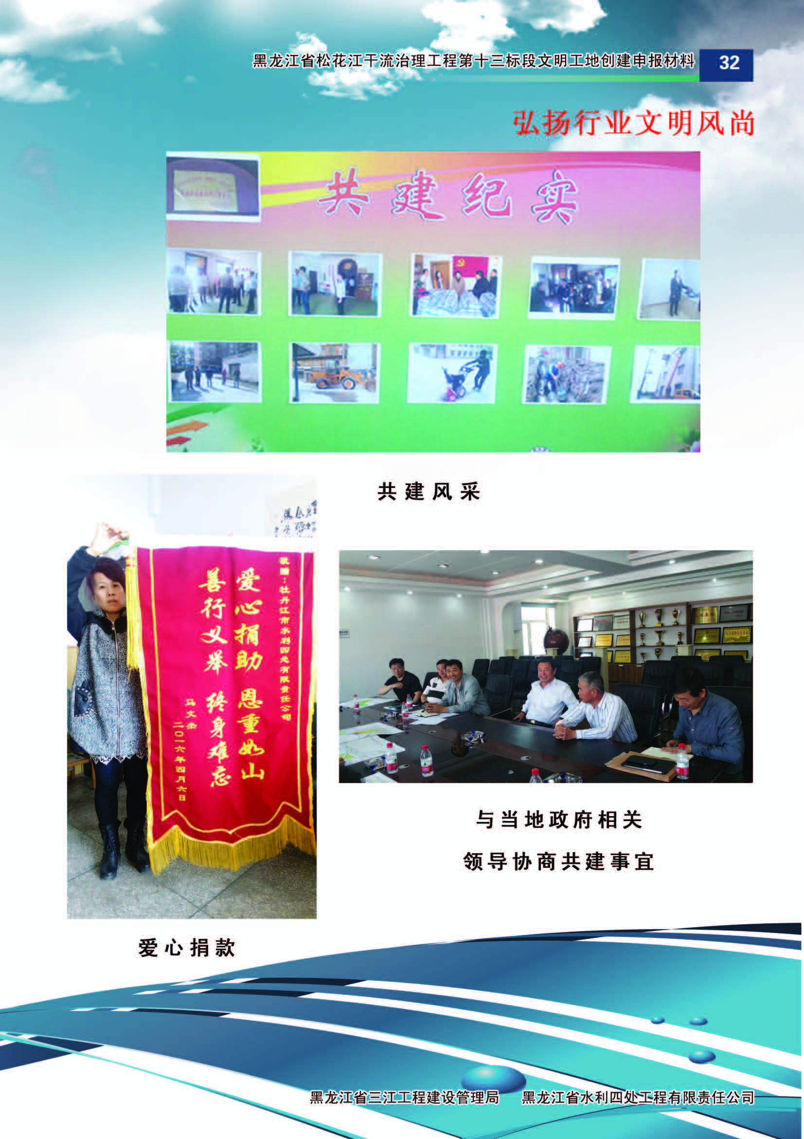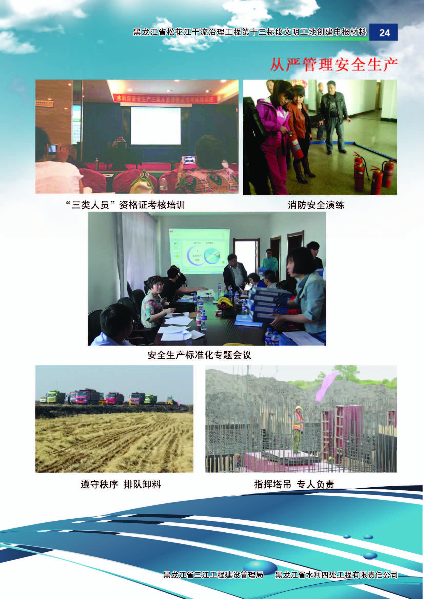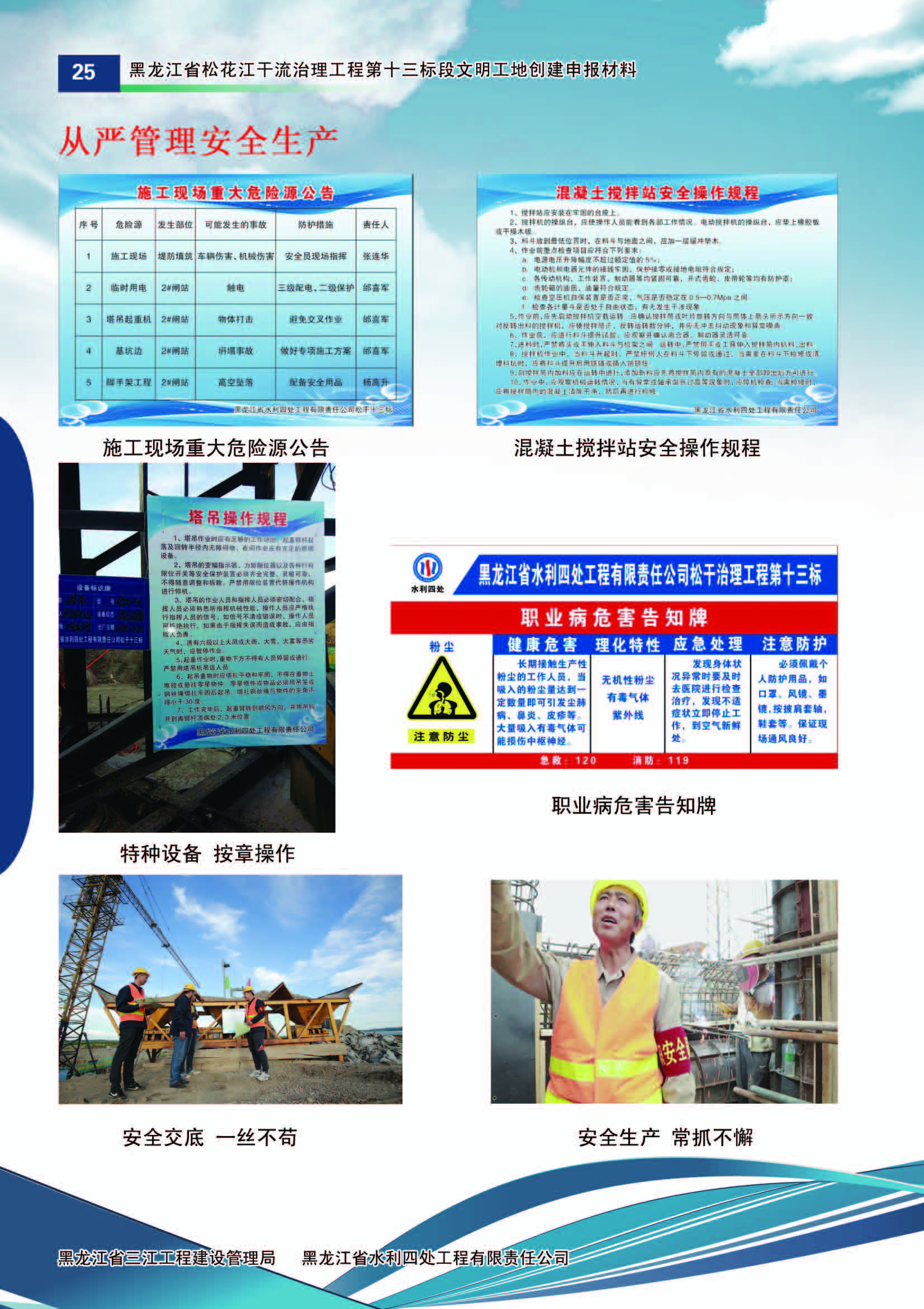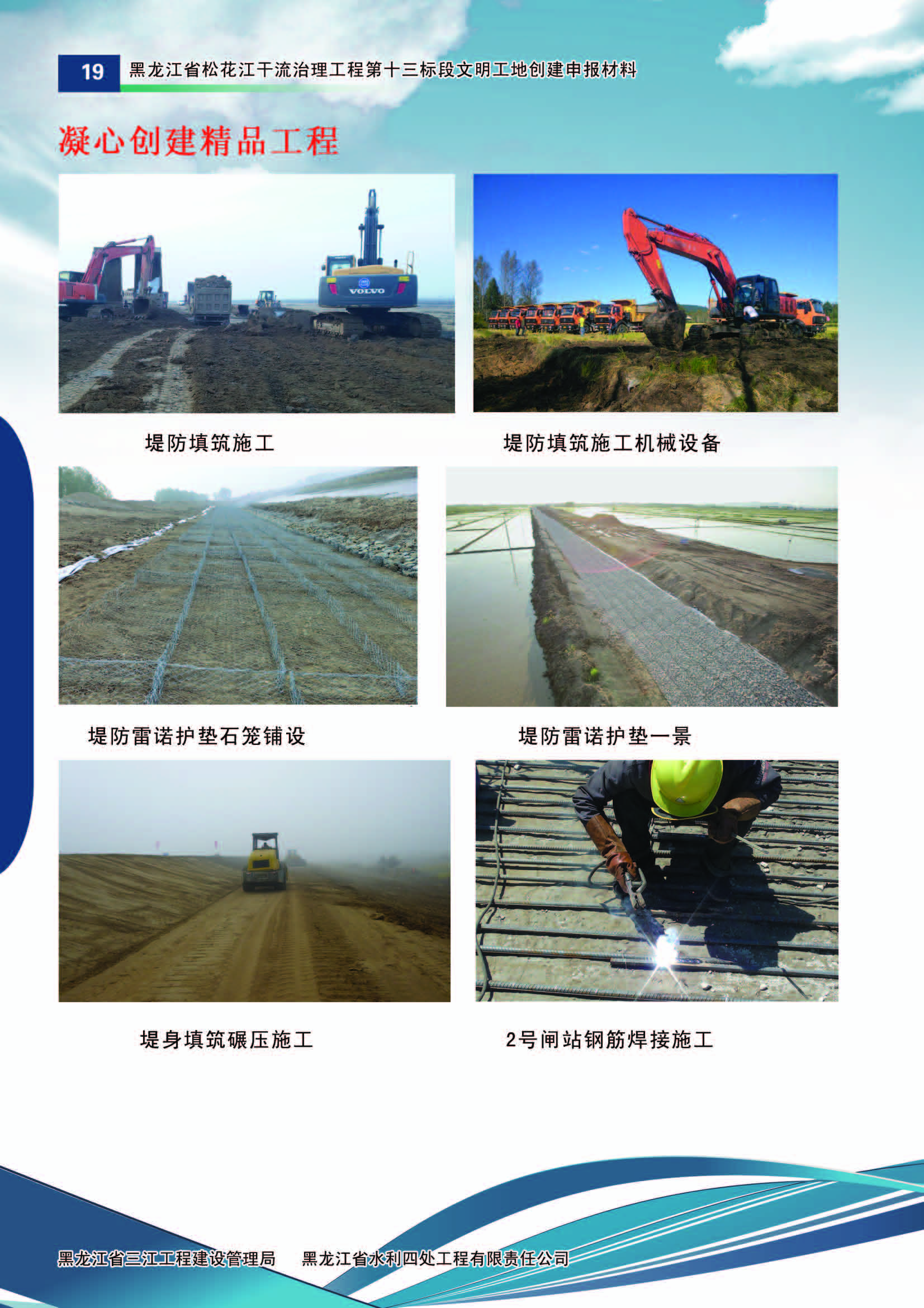 施工中黑龍江省水利四處嚴格按照水利部《水利建設工程文明工地創(chuàng)建管理辦法》的要求,積極組織開展文明工地創(chuàng)建活動。
