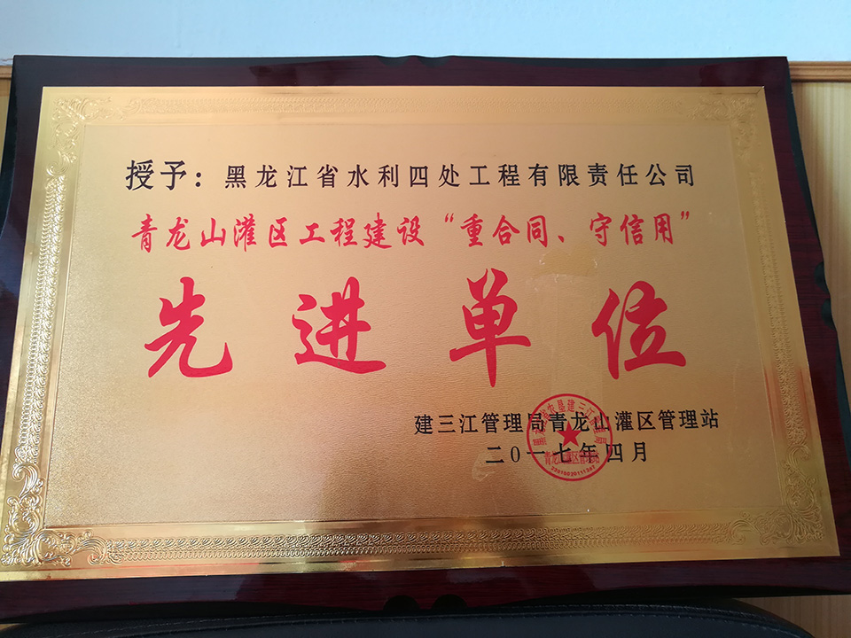 建三江管理局“青龍山灌區(qū)工程建設(shè)”重合同、守信用“先進(jìn)單位