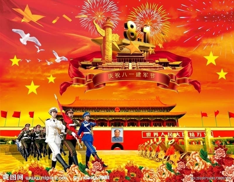 1933年7月,中華蘇維埃共和國臨時(shí)中央政府決定八月一日 為中國工農(nóng)紅軍(中國人民解放軍前身)成立紀(jì)念日。從此,8月1日成為中國人民解放軍建軍節(jié)。建軍節(jié)期間,中國各地都要集中開展 ? 擁軍優(yōu)屬、擁政愛民的活動(dòng),紀(jì)念人民軍隊(duì)的誕生。