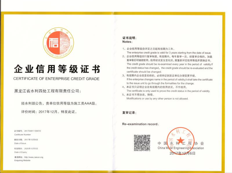近日,從中國(guó)水利工程協(xié)會(huì)傳來喜訊,我公司再次被評(píng)為“全國(guó)AAA級(jí)信用水利施工單位”,這是繼2014年以來,我公司再次獲評(píng)此稱號(hào)。該稱號(hào)有效期為3年。