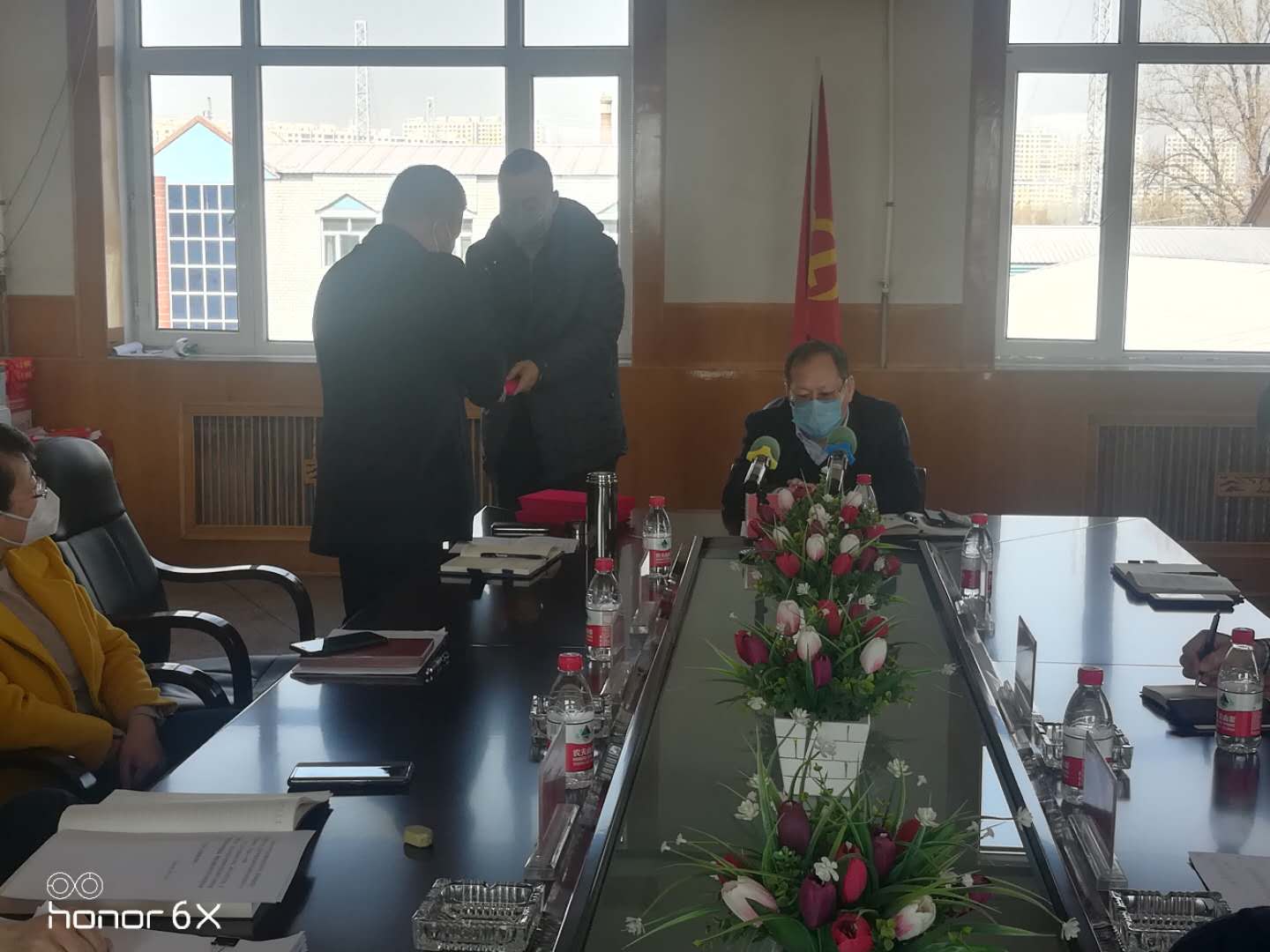 會上,公司總經(jīng)理劉波為新聘用的工程分公司經(jīng)理頒發(fā)了聘書。