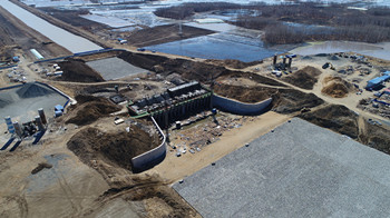 2017年,形象進(jìn)度為中總干渠圍堰填筑、青四干導(dǎo)流開挖全部完成,土方開挖完成26.7%,防滲墻灌注樁全部完成,防滲墻旋噴樁全部完成,站身基礎(chǔ)砼預(yù)制管樁全部完成。