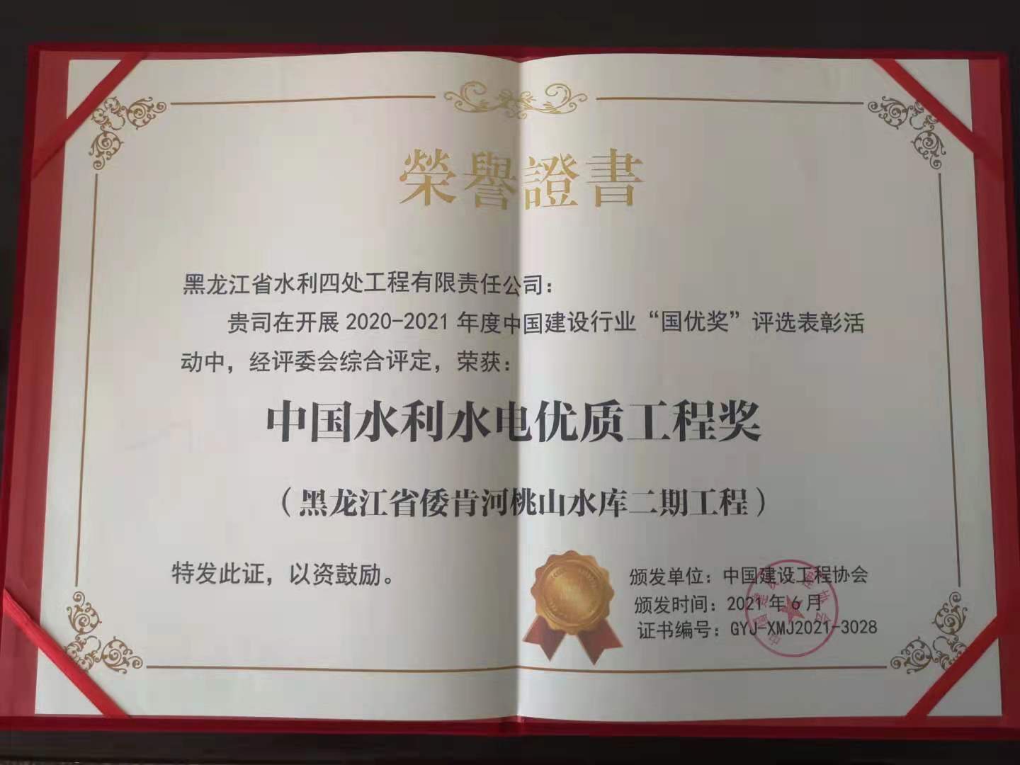 近日,從中國建設工程協(xié)會傳來喜訊,我公司承建的七臺河桃山水庫二期工程在2020-2021年度中國建設行業(yè)“國優(yōu)獎”評選表彰活動中,被評為“中國水利水電優(yōu)質(zhì)工程獎”,標志著我公司水利工程質(zhì)量躍上新臺階。