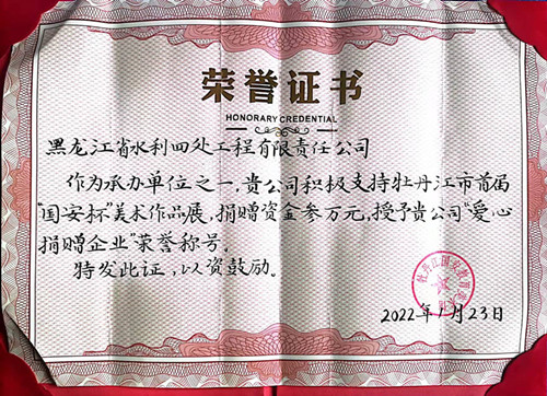 多年來,水利四處積極參加社會(huì)公益活動(dòng),以實(shí)際行動(dòng)奉獻(xiàn)愛心,特別是在黨史學(xué)習(xí)教育活動(dòng)中,做到學(xué)黨史、悟思想、辦實(shí)事、開新局。水利四處不但在企業(yè)內(nèi)部興大力辦實(shí)事,而且對外關(guān)注社會(huì)需求,發(fā)揮企業(yè)的光和熱。在此次牡丹江市首屆“國安杯”美術(shù)書法作品展中,我公司捐款3萬元,有力支持了該活動(dòng)的順利開展。