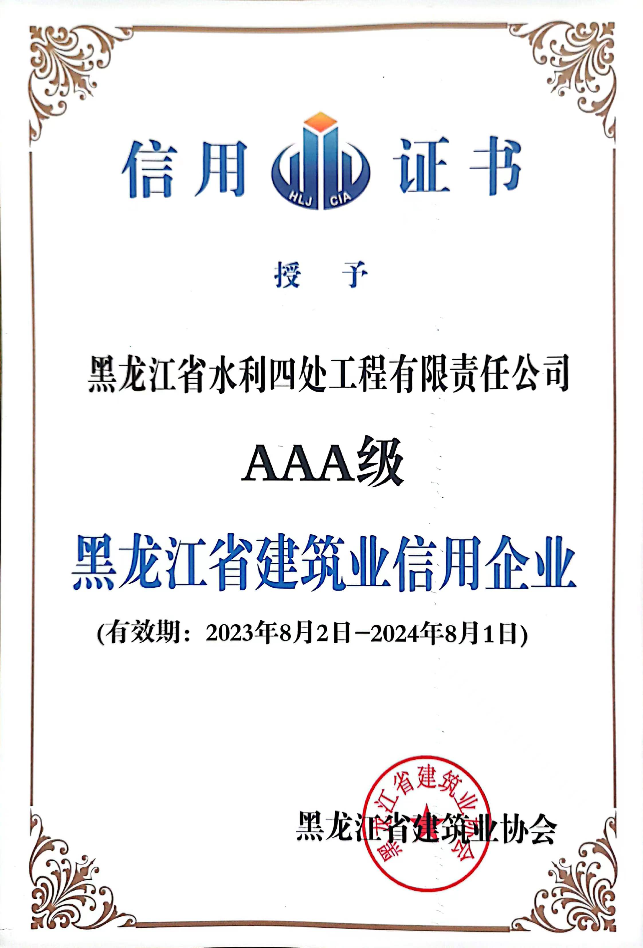黑龍江省建筑業(yè)AAA級信用企業(yè)證書
